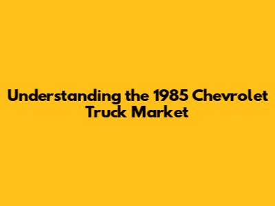Understanding the 1985 Chevrolet Truck Market