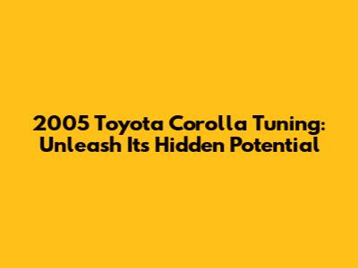 2005 Toyota Corolla Tuning: Unleash Its Hidden Potential