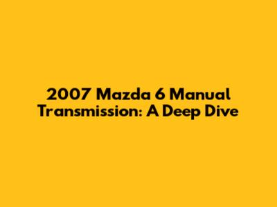 2007 Mazda 6 Manual Transmission: A Deep Dive