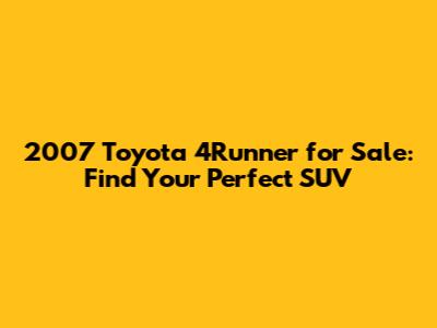 2007 Toyota 4Runner For Sale: Find Your Perfect SUV