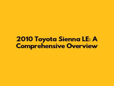 Hey guys! Let's dive into the 2010 Toyota Sienna LE Minivan 4D, a vehicle that's become a household name for a good reason. This minivan has a reputation for reliability, spaciousness, and practicality, making it a popular choice for families. We're going to take a detailed look at what makes the 2010 Sienna LE a solid option, covering everything from its features and performance to potential issues and how to keep it running smoothly. Whether you're considering buying one or already own one, this guide is packed with helpful info.