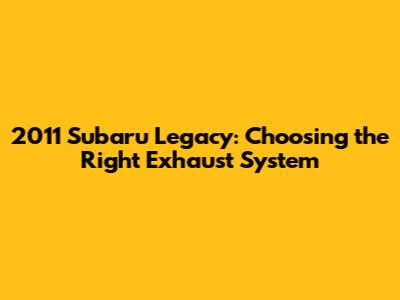 2011 Subaru Legacy: Choosing The Right Exhaust System