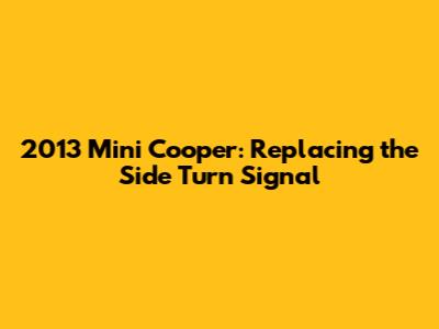 Replacing the side turn signal on your 2013 Mini Cooper is a simple and rewarding DIY project. By following these steps and tips, you can save money and gain a sense of accomplishment. Remember to prioritize safety and take your time. With a little patience and the right tools, you'll have your Mini Cooper looking and signaling its best in no time!