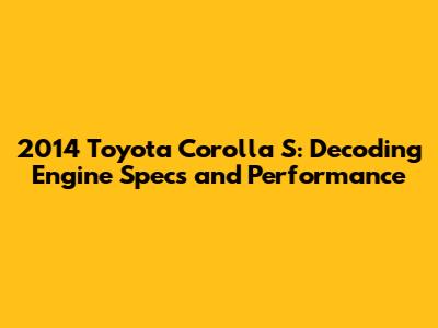 2014 Toyota Corolla S: Engine Specs & Performance