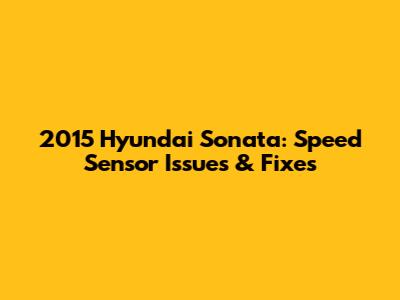 2015 Hyundai Sonata: Speed Sensor Issues & Fixes