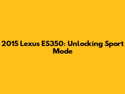 Hey guys! Ever wondered about that elusive Sport Mode on your 2015 Lexus ES350? You're in the right place! Many folks have this question, and it's a pretty neat feature that can totally change how your luxury sedan feels behind the wheel. We're going to dive deep into what Sport Mode is, how to activate it, and why you might want to use it. Get ready to spice up your driving experience!