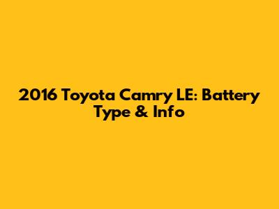 2016 Toyota Camry LE: Battery Type & Info