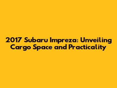 Hey guys! Let's dive deep into the 2017 Subaru Impreza and explore one of the most practical aspects: cargo space. Knowing how much stuff you can haul around is super important, whether you're a busy parent, a weekend adventurer, or just someone who likes to be prepared. So, let's break down everything you need to know about the 2017 Impreza's cargo capacity, from its dimensions to how it stacks up against the competition. Get ready to find out if this car has enough room for your lifestyle!