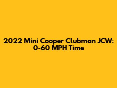 Let's dive into the exhilarating world of the 2022 Mini Cooper Clubman John Cooper Works (JCW), a car that perfectly blends practicality with pulse-pounding performance. If you're anything like me, the first question that pops into your head is: how fast can this thing really go? The answer, my friends, lies in the coveted 0-60 mph time. We're not just talking about a grocery-getter here; we're talking about a machine that can launch you from a standstill to 60 mph in a seriously impressive time. This article will explore everything you need to know about the 2022 Mini Cooper Clubman JCW's 0-60 mph capabilities, factors influencing its acceleration, and how it stacks up against its rivals. Buckle up, because we're about to take a ride!