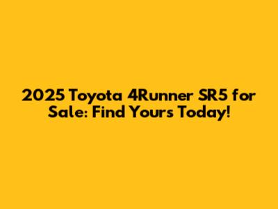 Finding a 2025 Toyota 4Runner SR5 for sale is an exciting journey. With its blend of reliability, off-road capability, and modern features, the 4Runner SR5 is an excellent choice for anyone seeking a versatile and dependable SUV. By doing your research, considering your budget, and following the tips outlined in this article, you can find the perfect 4Runner and enjoy years of adventures behind the wheel. Happy hunting, and drive safely!