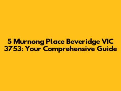 Hey guys! Ever find yourself curious about a specific address? Today, we're diving deep into 5 Murnong Place, Beveridge VIC 3753. Whether you're a prospective buyer, a curious neighbor, or just someone who stumbled upon this address, this guide is designed to give you a comprehensive overview. We'll explore everything from the property itself to the surrounding community, local amenities, and what makes this location a unique place to live. So, let's get started and uncover all the details about 5 Murnong Place.