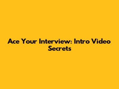 Ace Your Interview: Intro Video Secrets