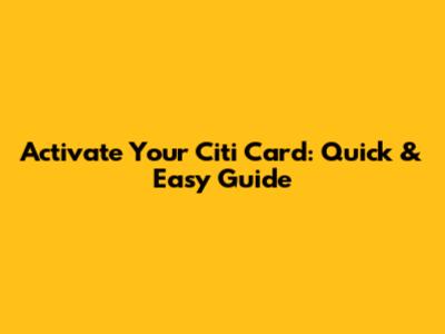 Activate Your Citi Card: Quick & Easy Guide