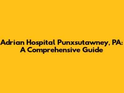 Let's dive into everything you need to know about Adrian Hospital in Punxsutawney, Pennsylvania. Whether you're a resident, a visitor, or just curious, this guide will provide you with detailed information about the hospital's services, its impact on the community, and why it's an essential healthcare provider in the region.