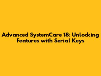 Advanced SystemCare 18: Unlocking Features With Serial Keys