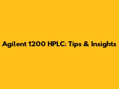 Agilent 1200 HPLC: Tips & Insights