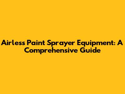 Airless Paint Sprayer Equipment: A Comprehensive Guide