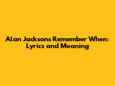 Alan Jackson's Remember When: Lyrics And Meaning