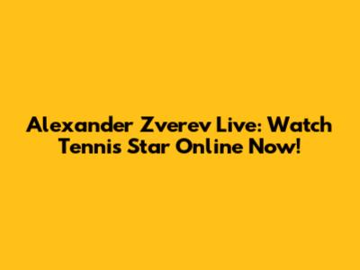 Alexander Zverev Live: Watch Tennis Star Online Now!