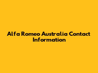 Alfa Romeo Australia Contact Information