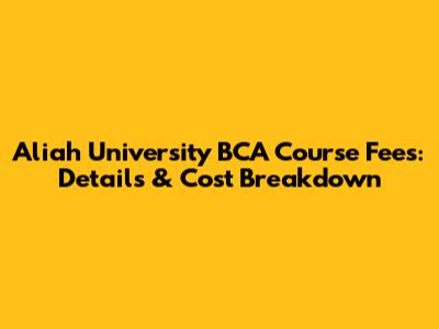 Aliah University BCA Fees: Details & Cost Breakdown