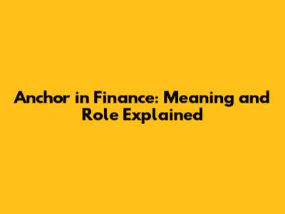 Anchor In Finance: Meaning And Role Explained