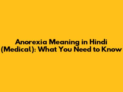 Anorexia Meaning In Hindi (Medical): What You Need To Know