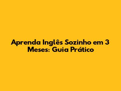 Aprenda Inglês Sozinho Em 3 Meses: Guia Prático