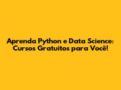 Aprenda Python E Data Science: Cursos Gratuitos Para Você!