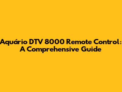 Aquário DTV 8000 Remote Control: A Comprehensive Guide