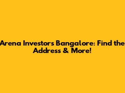Arena Investors Bangalore: Find The Address & More!