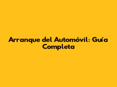 Arranque Del Automóvil: Guía Completa