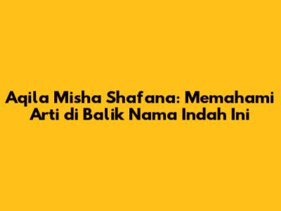 Nama Aqila Misha Shafana adalah sebuah nama yang indah dan penuh makna. Kombinasi dari bahasa Arab, Rusia, dan Sansekerta ini menciptakan harmoni yang unik, dengan arti 'seorang yang bijaksana, bahagia, dan selalu dalam perlindungan Tuhan'. Nama ini mencerminkan harapan orang tua agar anaknya tumbuh menjadi individu yang sukses, bahagia, dan selalu berada dalam lindungan Ilahi.