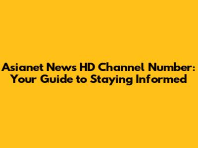 Asianet News HD: Find Your Channel Number Now!