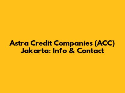 Hey guys! Ever heard of Astra Credit Companies (ACC) in Jakarta and wondered what they're all about? Maybe you're looking for financing options or just curious about this big player in the Indonesian financial scene. Well, you've come to the right place! Let's dive deep into what ACC Jakarta offers, how to get in touch with them, and everything else you need to know.