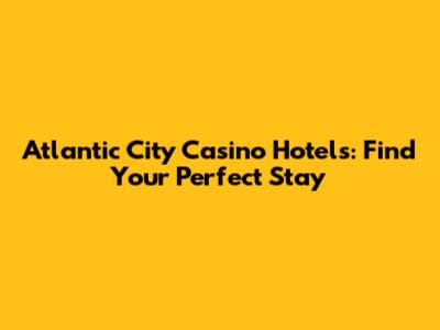 Atlantic City Casino Hotels: Find Your Perfect Stay