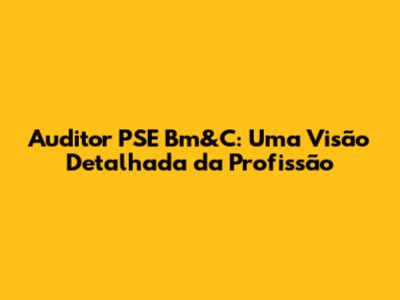 O Que É um Auditor PSE Bm&C? Decifrando a Sigla