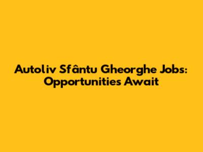 Autoliv Sfântu Gheorghe Jobs: Opportunities Await