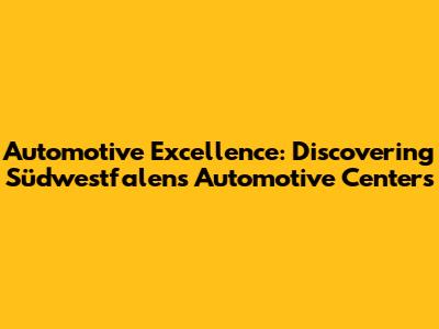 Automotive Excellence: Discovering Südwestfalens Automotive Centers