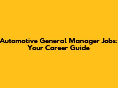 Automotive General Manager Jobs: Your Career Guide