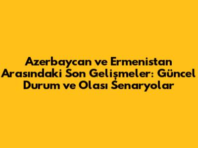 Selam millet! Bugün, Azerbaycan ve Ermenistan arasındaki son durum hakkında konuşacağız. Kafkasya'nın bu iki ülkesi arasındaki ilişkiler, uzun yıllardır gergin ve zaman zaman çatışmalı bir seyir izledi. Peki, şu anda neler oluyor ve gelecekte bizi neler bekliyor? Hazırsanız, detaylara inelim!