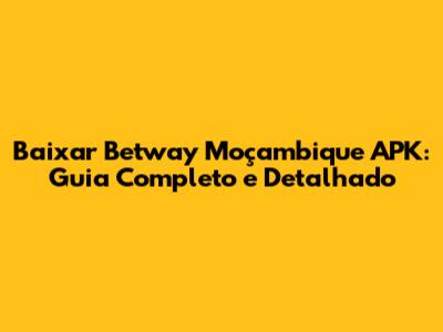 Baixar Betway Moçambique APK: Guia Completo E Detalhado