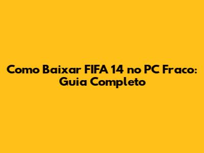 Baixar FIFA 14 Em PC Fraco: Guia Completo