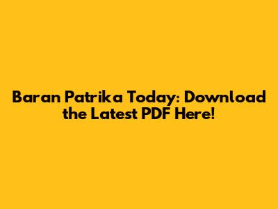 Baran Patrika Today: Download The Latest PDF Here!