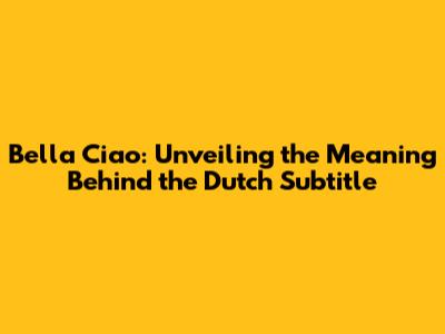 Bella Ciao: Dutch Subtitle & Meaning Explained