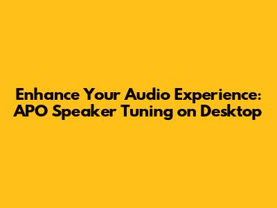 Hey guys! Ever felt like your desktop speakers could sound a whole lot better? Maybe the bass is muddy, the highs are tinny, or the overall sound just feels...meh? Well, you're in luck! We're diving deep into the world of APO (Audio Processing Object) and how you can use it to fine-tune your speakers and unlock their full potential. Trust me, it's a game-changer! This guide will walk you through everything, from the basics of APO to advanced tweaking techniques, ensuring you get the best possible sound from your desktop setup. Let's get started!