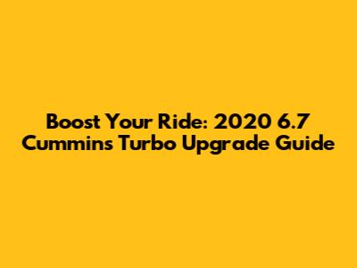 Boost Your Ride: 2020 6.7 Cummins Turbo Upgrade Guide