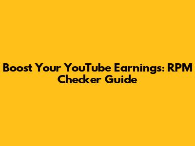 Boost Your YouTube Earnings: RPM Checker Guide