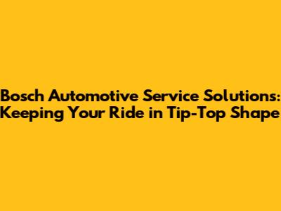 Bosch Automotive Service Solutions: Your Vehicle's Best Friend