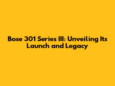 Bose 301 Series III: Unveiling Its Launch And Legacy